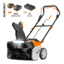 Комментарий: Свежий снег чистит шикарно. Слежавшийся сначала разбивали лопатой, потом убирали машинкой. Очень довольны по сравнению с электрической лопатой. Брали для чистки с крыши. Колеса большие и это плюс при чистке гофролиста. Толстый слой снега проходили за 2раза. сначала сверху, потом остаток. батарей на 2*4ач хватает на 30мин при средней плотности снега. докупим комплект.